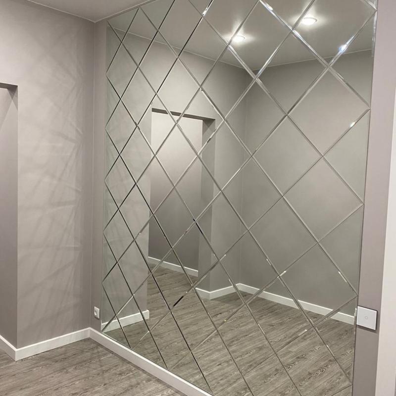 Использована серебряная квадратная зеркальная плитка 18х18.